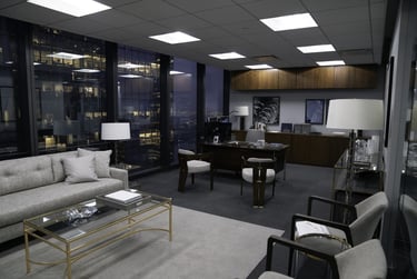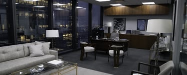 Cette série évolue dans des environnements de bureaux modernes, faits de verre et d'acier. L'élégance visuelle ne vient pas du mobilier, mais de la température de couleur. Les plafonniers sont éteints au profit de lampes de table à lumière chaude (tungstène) et de la lumière naturelle extérieure. Le contraste entre le chaud (intérieur) et le froid (extérieur) suffit à signer une image "Premium".
